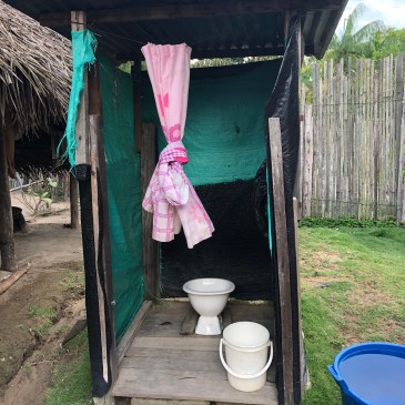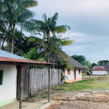 La seconde communauté est encore plus pauvre que la première : une centaine de personnes, jeunes et plus vieux, dorment tous dans des hamacs au bord de l’eau avec seulement un toit pour les protéger, ouvert sur l’extérieur. Pas de douche, cette fois on se lave directement dans le fleuve. Un toilette sans évacuation pour toute la communauté. Idem pas d’électricité. Nous avons la chance d’être dans une maison avec chacun un lit et une moustiquaire…