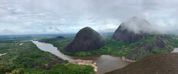 Départ 7h30 pour grimper le Cerros de Mavecure et avoir une vue extraordinaire sur les montagnes, les fleuves et la forêt. Cette fois c’était de l’escalade, la photo ci-dessous vous montre la montagne que nous avons montée. Regardez le sommet que nous avons escaladé. Il est totalement à la verticale.