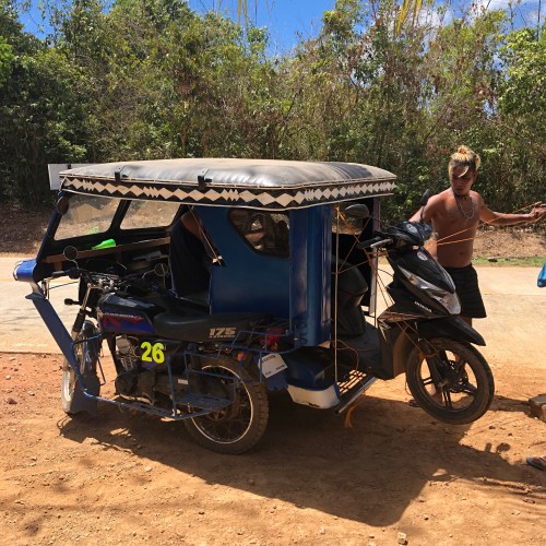 Notre hôtel étant à l’écart de la ville nous décidons de louer un scooter pour la semaine afin d’être plus autonomes qu’avec un touk touk. Belle idée, qui nous aura cependant valu quelques péripéties…entre ma perte d’équilibre en conduisant sur des planches en bois qui nous a menée tout droit vers un muret; deux jours plus tard la roue arrière qui crève au milieu de nulle part après 40min de route pour aller au nord de l’île, rapatriées en touk touk avec le scooter à l’arrière (j’aurais aimé que vous soyez une petite souris pour voir la scène c’était mythique); et enfin pour couronner le tout, une belle averse ou plutôt une grosse douche tropicale qui nous aura bien rincées !. Bravo cependant à Valoche la pilote qui a surmonté la pluie pendant 40 bonnes minutes.