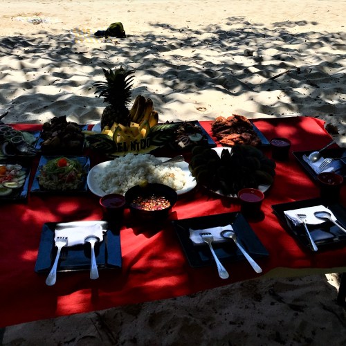 2e arrêt sur la Secret Beach, une plage accessible uniquement à marée basse car nous devons passer sous les rochers pour y accéder, donc par marée haute, impossible, d’où le nom de « Secret beach ». Nous passerons un déjeuner royal, préparé entièrement par l’équipe du bateau, photo à l’appui, un délice pour les yeux et les papilles ! Nous continuerons notre voyage d’îles en îles, à base de snorkeling comme dans un aquarium, de chill sur la plage et de photos posées bien évidemment.