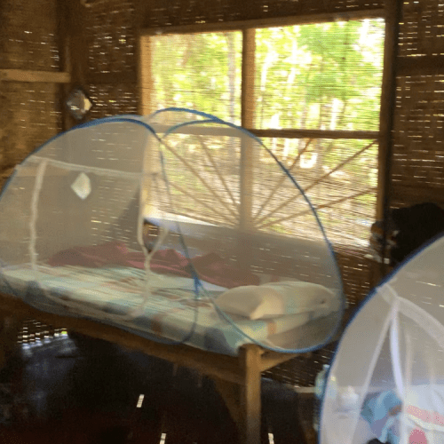 Nous quittons les fonds marins de Panglao le 4e jour pour découvrir la jungle de Loboc. Des amis voyageurs nous avaient conseillé le complexe Nuts Huts. Nuts Huts c’est quoi ? Ce sont des huttes nichées au milieu de la jungle, avec une rivière traversante, toutes en bois avec lits à moustiquaires, l’authenticité, la vraie !