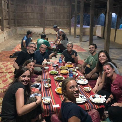 Nous terminons cette première journée de trek à l’arrivée au monastère où nous allons passer la nuit. L’endroit est magique et hors du temps. Nous dormons dans la salle principale qui fait office de salle de prière et partageons l’espace avec les moines et les jeunes Birmans en apprentissage. Avec trois fois rien, on nous sert un dîner royal où notre guide Jerry prend le temps de nous expliquer et de nous raconter quelques histoires sur le calendrier astrologique Birman*.
