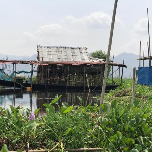 La découverte du Lac Inle commence par l’arrivée en barque à notre très joli hôtel et sa belle piscine (malheureusement inutilisable, d’ailleurs le seul Birman mal aimable rencontré fut le manager de cet hôtel, dommage…). Le trajet vers l’hôtel nous scotche par sa beauté. Nous avons hâte de découvrir ce qui s’y passe…Chill avec vue sur le lac au programme de l’après-midi suivi d’un magnifique coucher de soleil autour d’un verre avec les filles ! C’est la détente après l’effort.