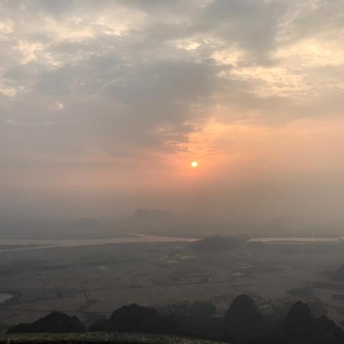 En effet, la principale activité dont nous entendons parler depuis le début du voyage est la montée du Mont Zwegabin au levé ou au coucher du soleil. Notre choix se porte rapidement vers le coucher de soleil puisque chaque jour le soleil se lève sous les nuages. Et bien, on ne s’attendait pas à une montée si difficile. Pour Margaux, c’est la pire montée qu’elle ait faite depuis le début de son Tour du Monde. Pour que vous imaginiez un peu : c’est une pente très raide composée d’une succession de marches interminables pour atteindre le sommet. « Quand y’en n’a plus y’en a encore ! » Constance est notre héroïne, elle monte les marches sans difficulté en nous disant que pour elle « c’est comme courir », et vu qu’elle court régulièrement, forcément c’est plus facile ! D’ailleurs, je profite d’avoir la plume pour passer le bonjour à notre cher Bib qui nous a laissé profiter de sa jeune petite femme pour 2 semaines ! Merci à toi Bib !