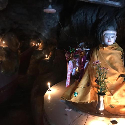 Nous prenons ensuite la direction du sud, vers Hpa An. La route dure quelques (longues) heures, l’occasion pour nous de découvrir des petites villes et villages birmans et d’apercevoir un bouddha géant qui trône sur les montagnes, un peu comme le San Cristobal à Rio… Une belle surprise.