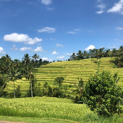 Nous arrivons donc aux rizières de Jatiluwih pour une balade de 1h30. Cette promenade au milieu d’étendues à perte de vue est sublime et le vent se lève pour notre plus grand plaisir. D’ailleurs, cette nature si belle est désormais protégée par l’Unesco depuis 2012 ce qui permet de ne pas voir pousser des immeubles à la place du riz et un tourisme de masse dans ce paradis.