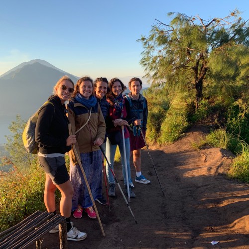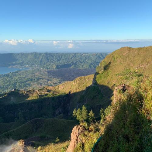 C’est donc à 4h, armés de nos lampes torches, que nous entamons une montée de 2h dans le noir afin de découvrir le spectacle magnifique d’un lever de soleil en altitude. Notre guide et son sourire ravageur nous fait ensuite faire le tour du mont à 1717 mètres d’altitude pour admirer cratères, sources d’eau chaude et autres paysages verts à perte de vue. Incroyable !