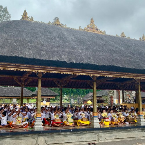 Journée (ou nuit) bien entamée, notre chauffeur plein d’entrain décide de nous faire visiter mille alentours et nous cédons pour un temple, ne rêvant pourtant que de dormir ! Un temple hindouiste dans une ambiance particulière en ce jour de fête avec surtout un emplacement pour les lavages corporels (spirituels et guérisseurs) sur lesquels le guide nous explique le cérémonial – avec ses innombrables, voire insupportables « t’as compris ? » « tu comprends« . Mais nos cerveaux sont trop fatigués pour se concentrer.