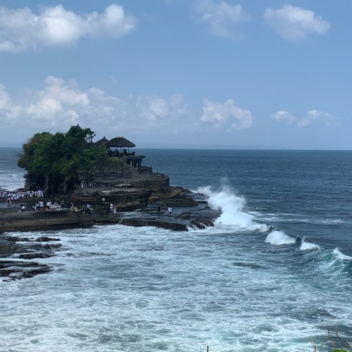 Nous lui faisons donc encore une remarque et nous voilà sur le bon chemin – la confiance n’excluant pas le contrôle, Margaux vérifie sur son Google Map – et nous arrivons au temple Tanah Lot, magnifique, où nous découvrons la mer pour la première fois depuis le début du séjour !