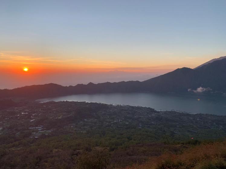 Pleins de motivation et d’envie, et grâce au super programme organisé par ma soeur Eléonore, nous décidons le lendemain matin d’aller grimper le Mont Batour pour admirer le lever de soleil à 6h20. Nous voilà donc levés à 2h30 pour rejoindre notre chauffeur. Après 40 minutes de route sinueuse en nous faisant avoir par de faux péages (au paiement évidemment obligatoire !!) nous arrivons au pied du Mont. Bien que l’on nous ait dit qu’un guide était inutile et que nous allions devoir obligatoirement payer 400 000 roupies par personne (25€) pour en avoir un sous peine de sanction, nous avons justement bien apprécié sa présence : il nous a d’abord offert des bâtons puis nous a fortement aidé sur le chemin et enfin offert un bon petit dej à l’arrivée !